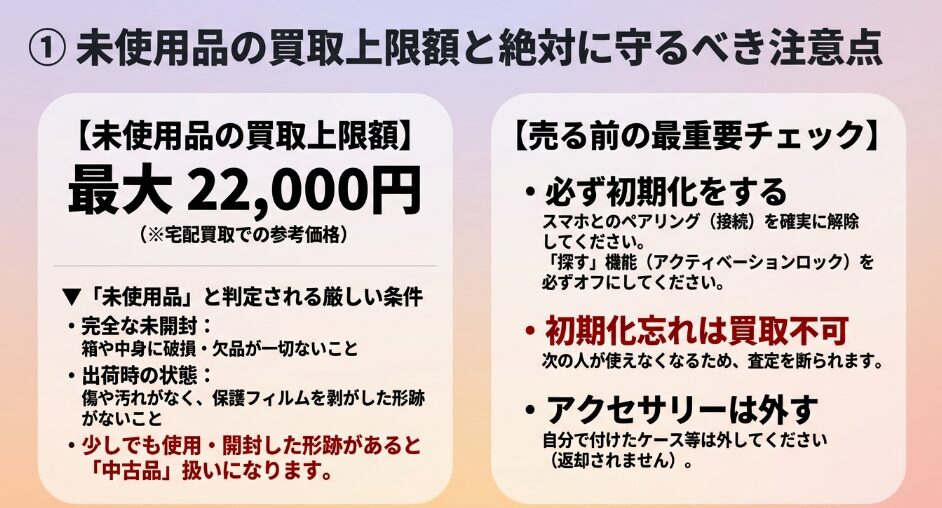 特に、本人確認書類の不備や初期化忘れは、その場で買取不可になる最大の原因