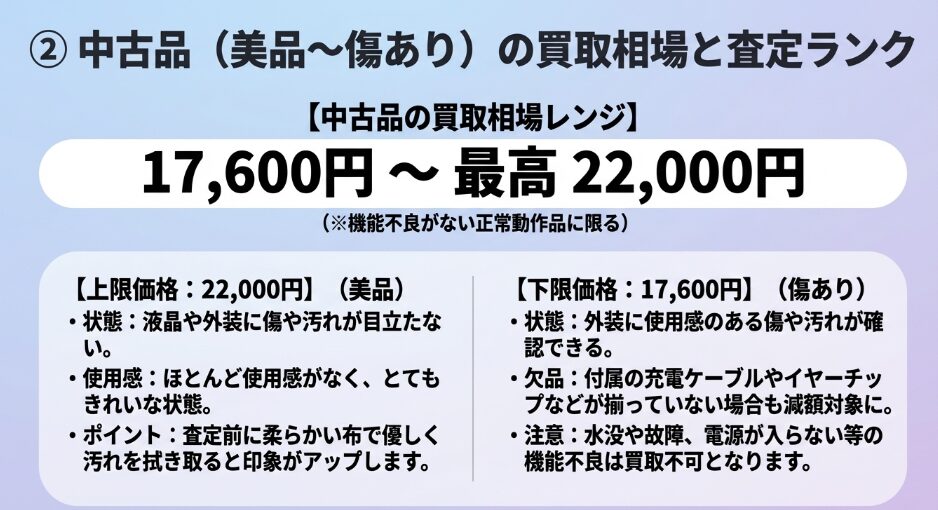 お手元のAirPods Pro 3の状態によっては、期待した金額を大幅に下回る可能性があることを理解しておきましょう。
