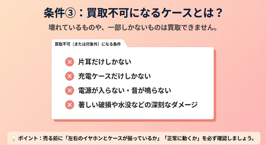 ジャンク品(片耳・故障)買取不可・大幅減額要査定(状態による)