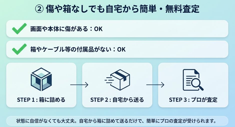 傷や箱なしでも自宅から簡単・無料査定