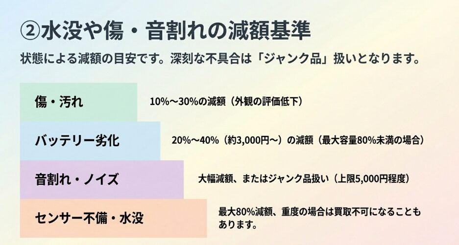 水没や傷・音割れの減額基準