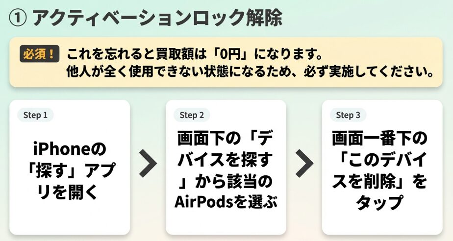 - 買取に出す前のペアリング解除やAirPods Pro 3本体の初期化は必須