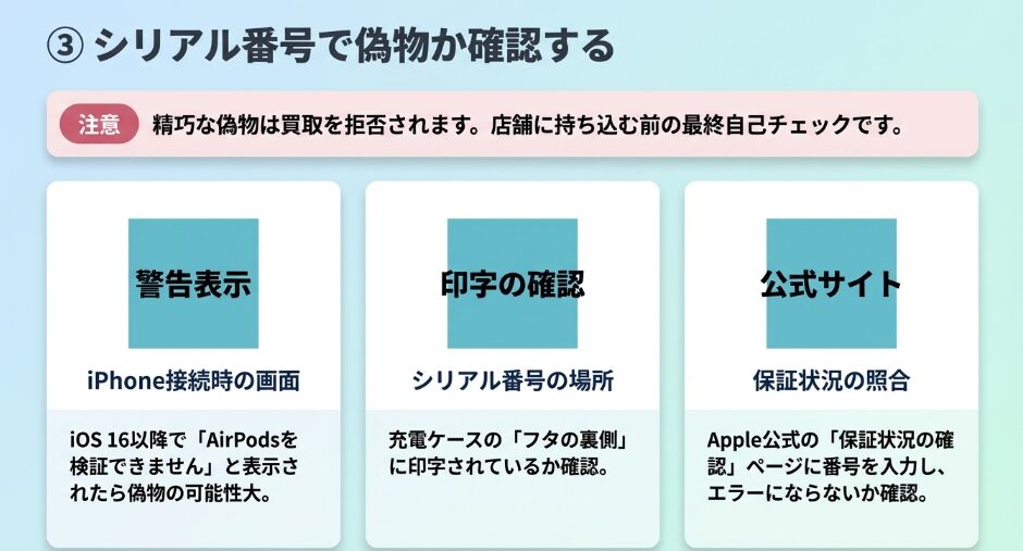AirPods Pro 3が偽物だった場合、ハードオフでは買取不可として査定を断られてしまいます。