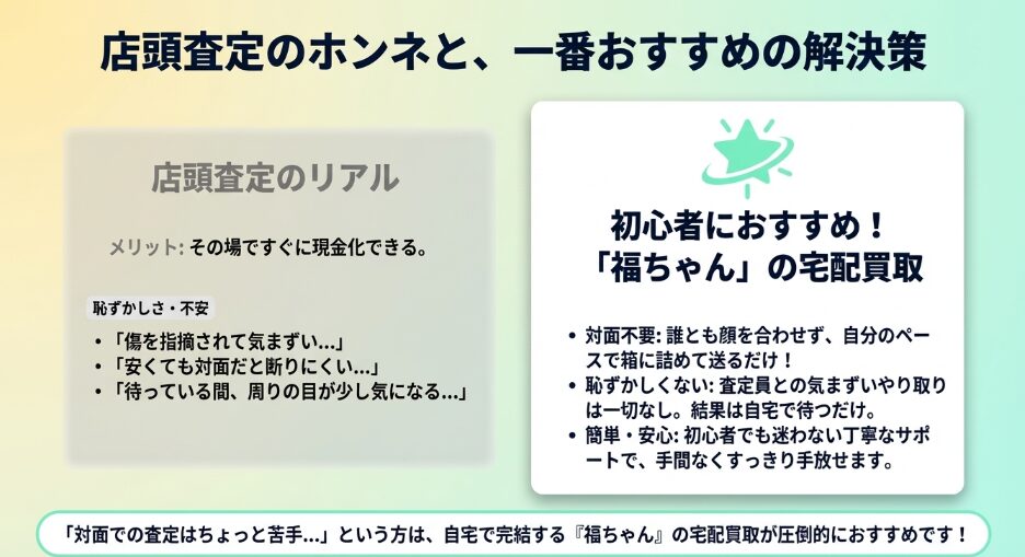 店頭査定のメリットと恥ずかしさ