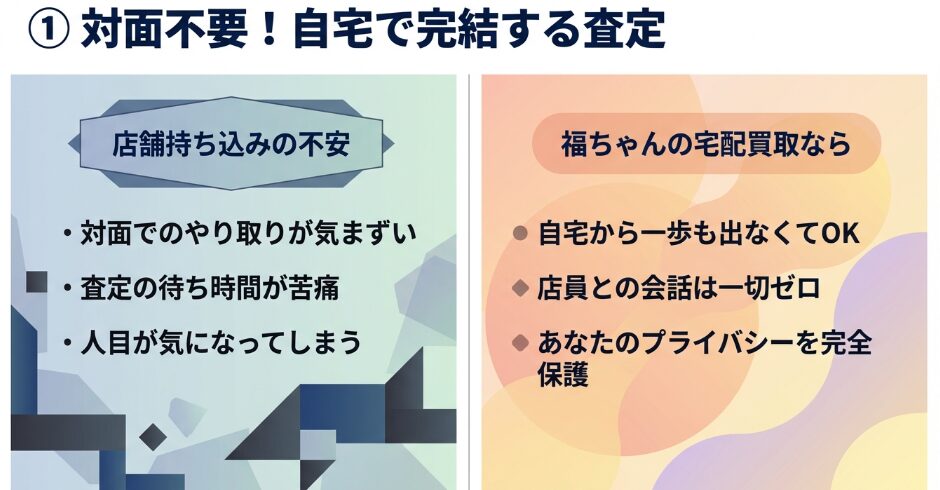 対面が苦手な方は、誰にも見られない福ちゃんなどの宅配買取がぴったりです。