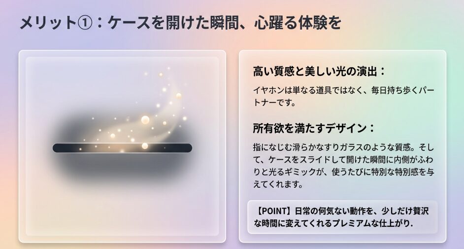 • ケースを開けた際にイヤホンが光る演出(所有欲)を重視する人