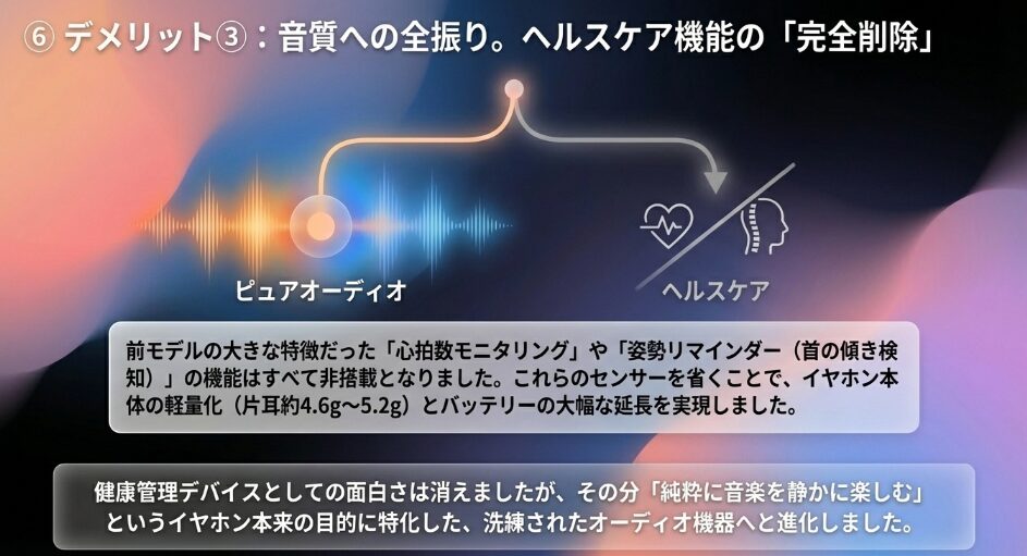 • ヘルスケア機能やLEDの削除がもたらした実用面への影響