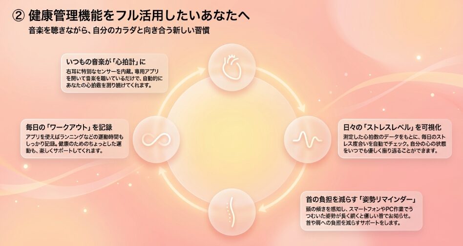 • イヤホンで心拍数や姿勢などの健康管理を行いたい人