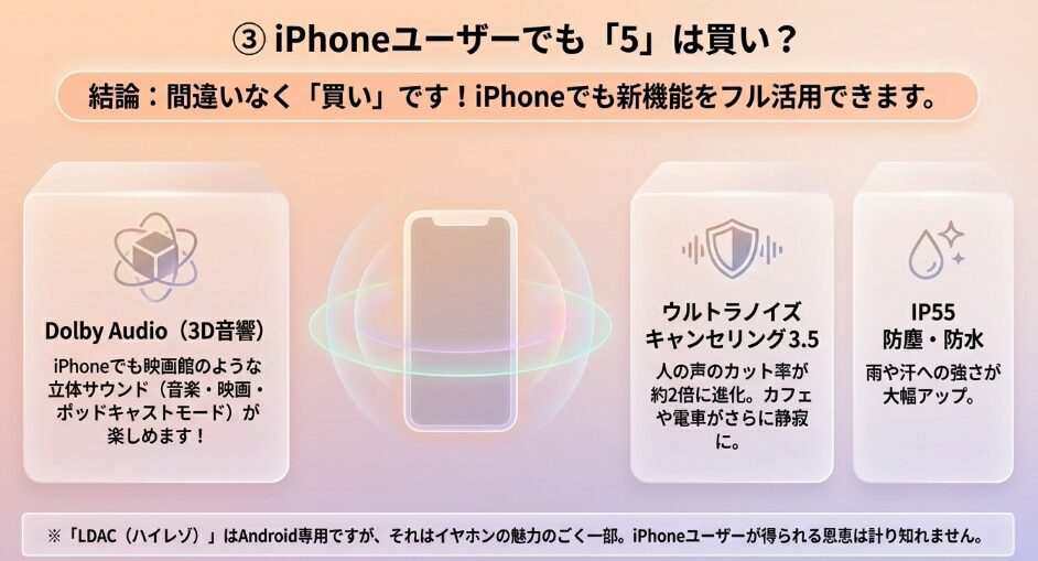 はい、iPhoneユーザーにとってもSoundcore Liberty 5は非常に価値のある選択肢です。