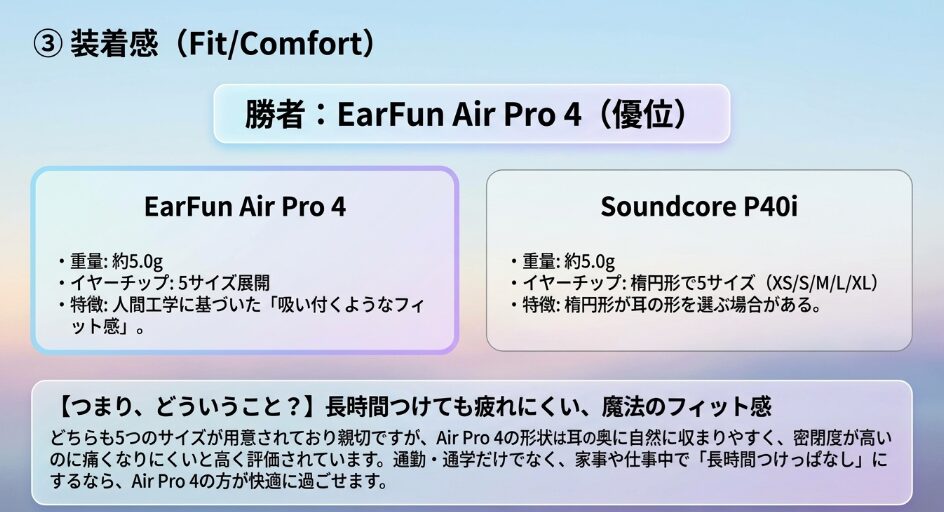 まとめ:EarFun Air Pro 4とAnker Soundcore P40iの比較