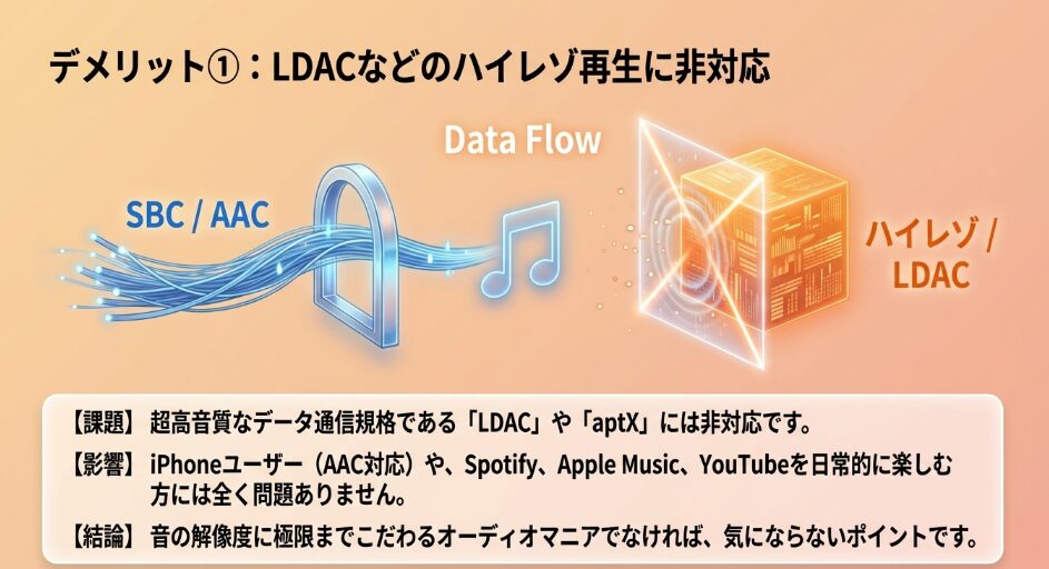 | iPhoneを利用中 | LDAC非対応でも問題ない | 端末の性能を十分に引き出せる |