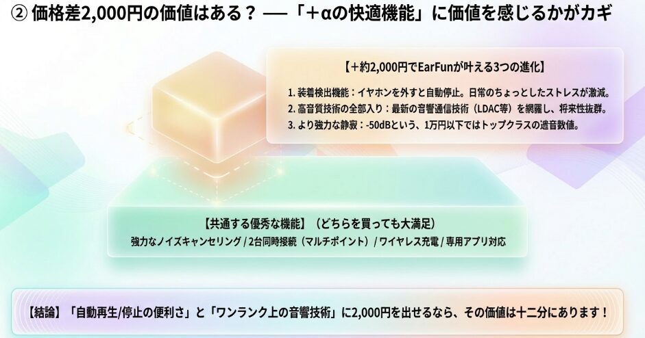 約2,000円の価格差はありますが、ご自身のライフスタイルや使い方にピタリと合う方を選んで、快適なオーディオ環境をぜひ手に入れてくださいね!