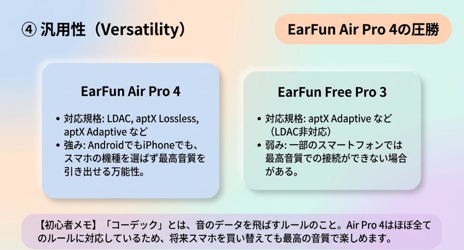 - 汎用性 | EarFun Air Pro 4の圧勝