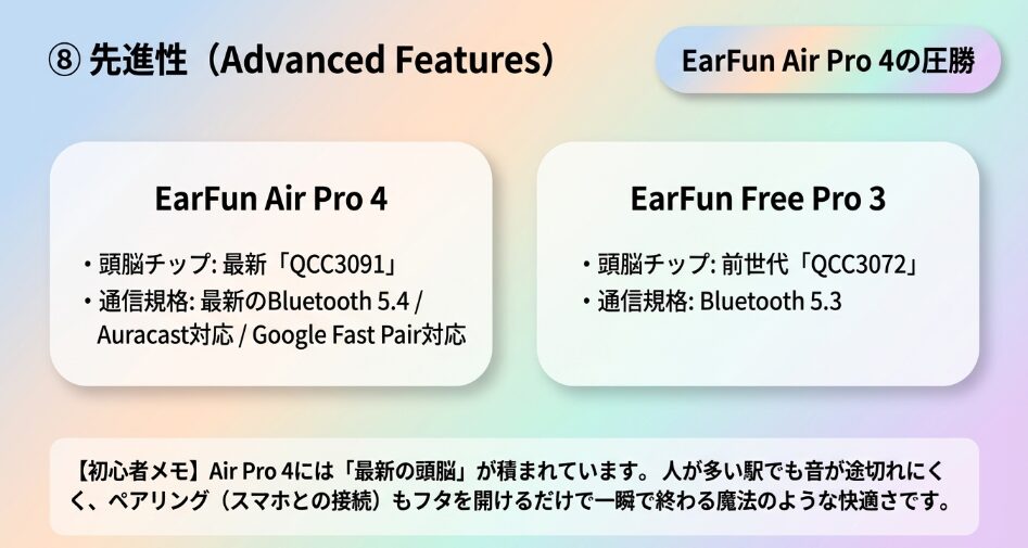 EarFun Air Pro 4とFree Pro 3 比較をするうえで、総合力で選ぶならEarFun Air Pro 4の圧勝です。