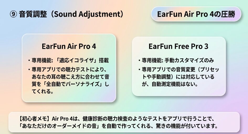 - 音質調整 | EarFun Air Pro 4の圧勝