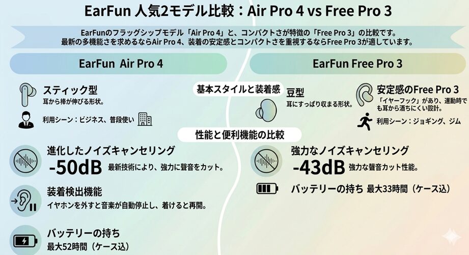 まとめ:EarFun Air Pro 4とEarFun Free Pro 3の比較