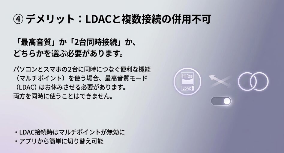 | マルチポイント | 対応(※LDAC併用不可) | 対応 |
