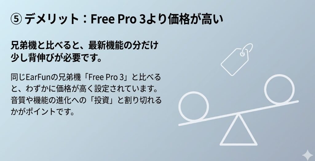 | 比較ポイント | EarFun Free Pro 3の強み | おすすめの理由 |