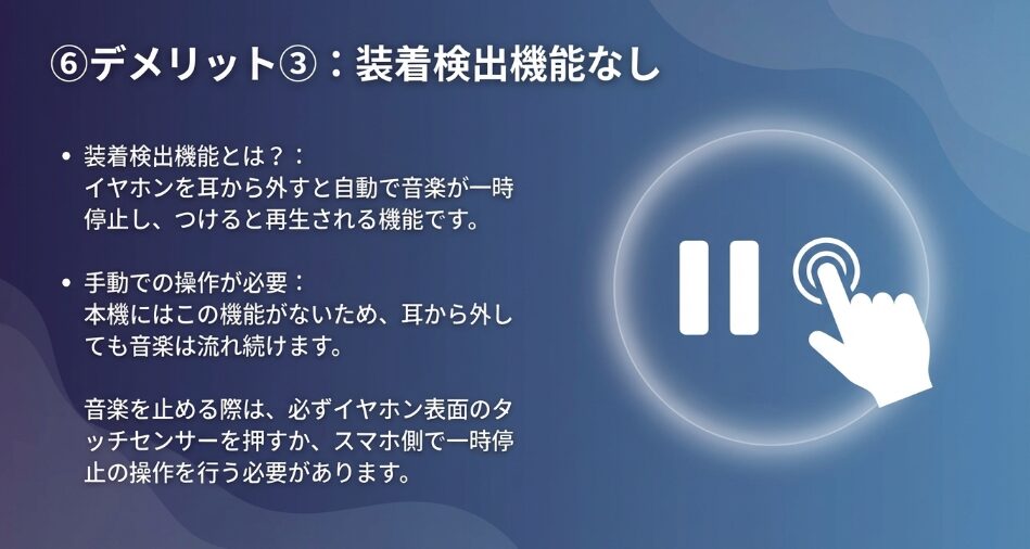 | 装着検出機能 | あり(自動停止・再生) | なし |