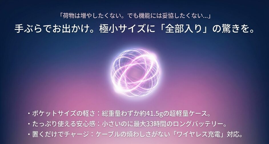手ぶらでの散歩や、小さなバッグで外出する際にも、EarFun Free Pro 3の身軽さは日々のストレスを大きく減らしてくれるはずです。