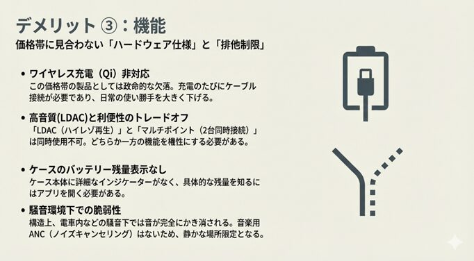 なぜなら、この約1万円の価格差は、単なるブランド料の差ではなく「音質」や「通話品質」、そして「操作の快適さ」といった、毎日の使い心地に直結するからです。