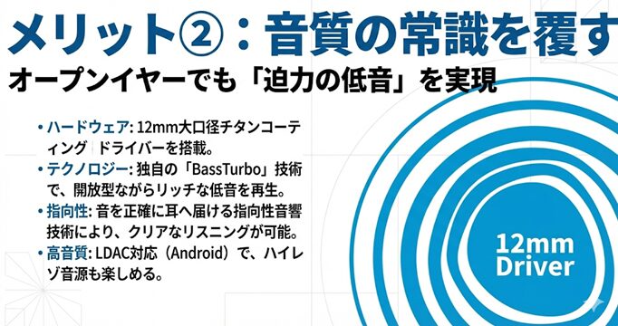 - オープンイヤーでも「低音不足」に悩みたくないならこのモデル