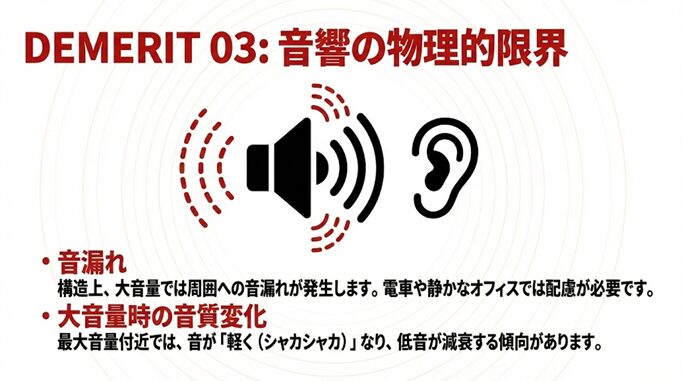 | 耳の穴が痛い | 耳を塞がないので、物理的な痛みがゼロ |