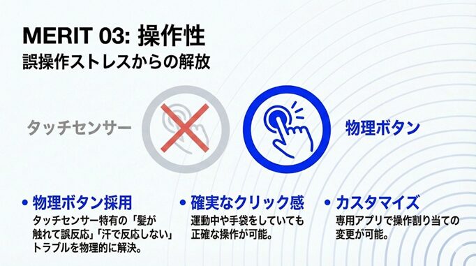 - 操作ミスによるイライラをゼロにしたいなら物理ボタン一択