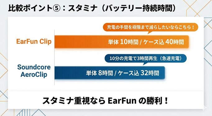 EarFun ClipとAnker Soundcore AeroClipを徹底比較してきましたが、最終的な結論は非常にシンプルです。