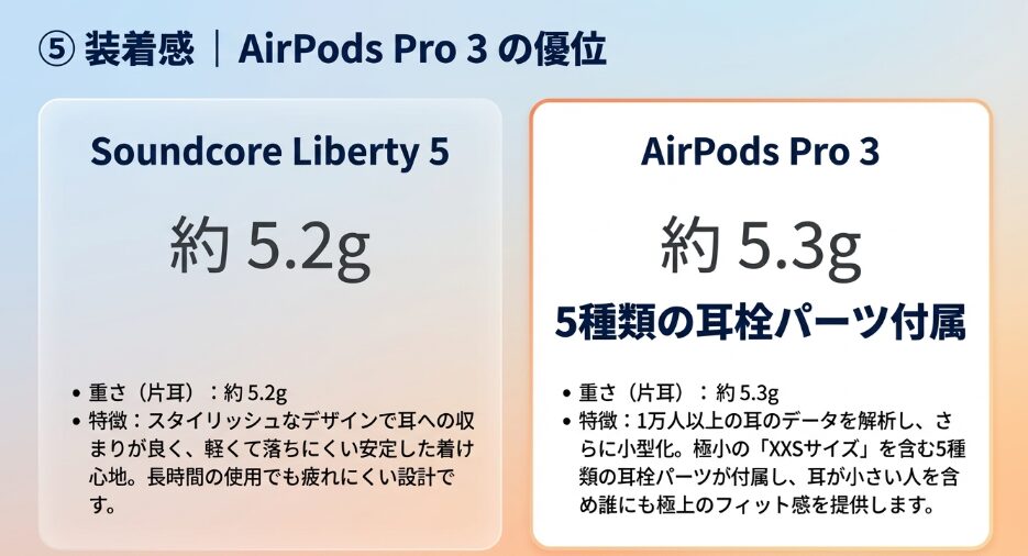 | 比較項目 | Soundcore Liberty 5 | AirPods Pro 3 |
