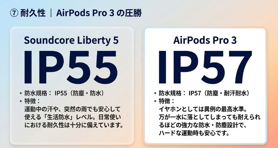 - 耐久性 | AirPods Pro 3の圧勝