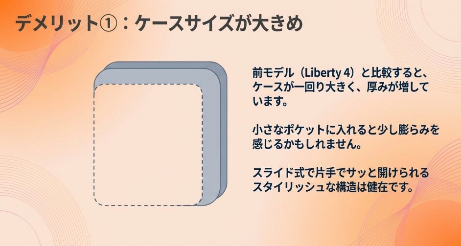 - 充電の心配を減らしたい方には、バッテリーが長持ちするLiberty 5が心強いです。