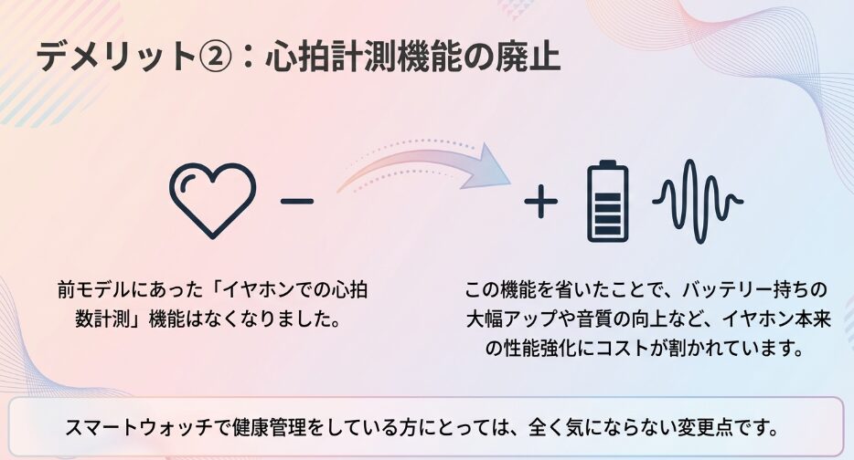 約2.5倍の価格差は、主にApple IntelligenceによるAI機能や心拍数計測といった「イヤホンの枠を超えた付加価値」に起因しています。
