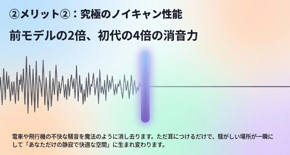 | 進化したANC | 心地よい静寂をつくってくれる |