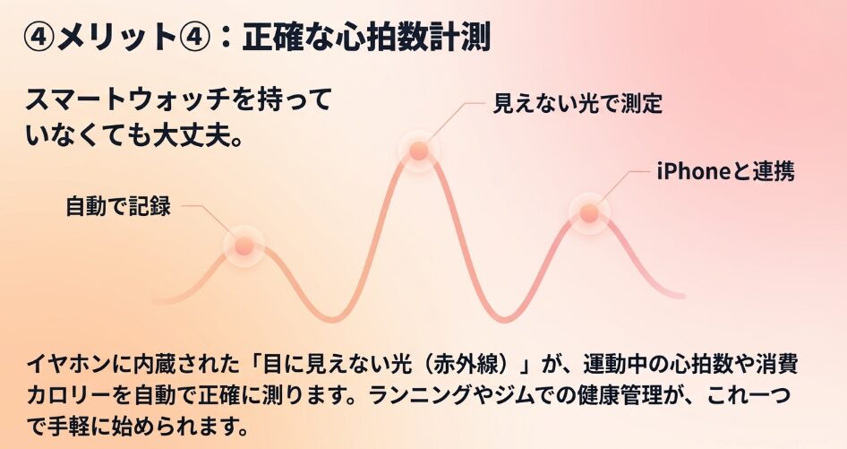 - 運動中の様子をチェックしたい健康志向の方にも、AirPods Pro 3は役立ちます。