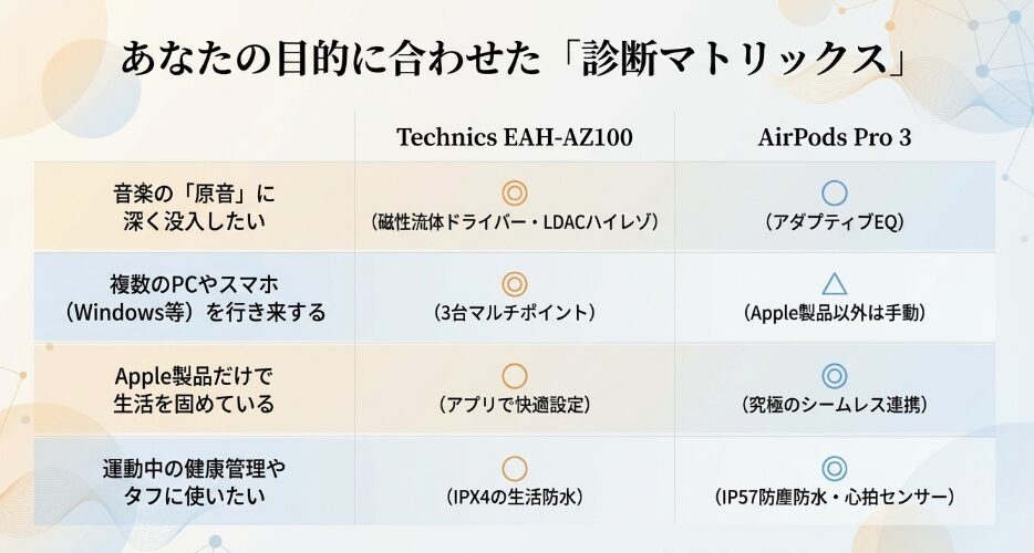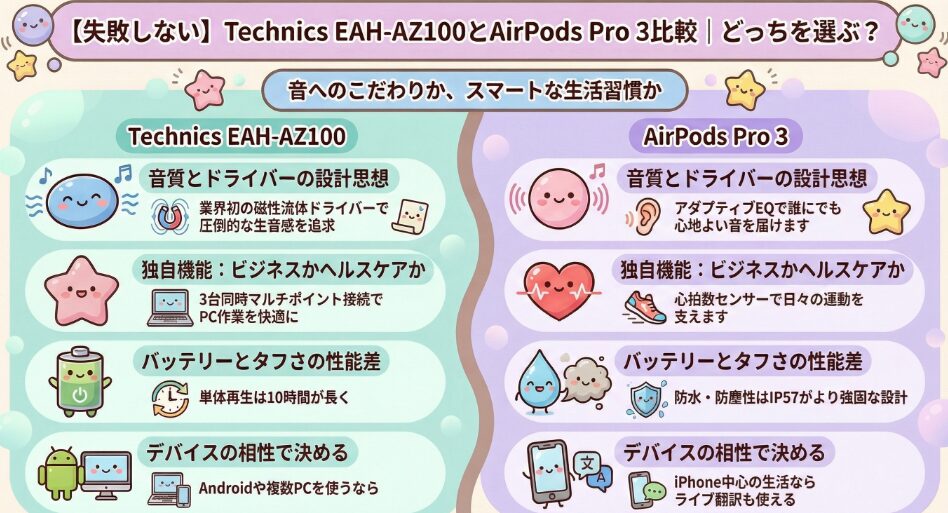 まとめ:Technics EAH-AZ100とAirPods Pro 3の比較