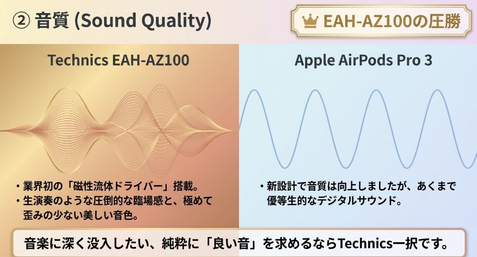 Technics EAH-AZ100が届けてくれる「音楽の感動」か、AirPods Pro 3が届けてくれる「魔法のような体験」か。