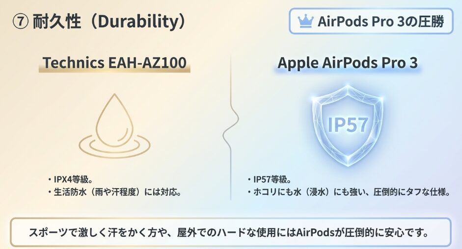 - 耐久性|AirPods Pro 3の圧勝