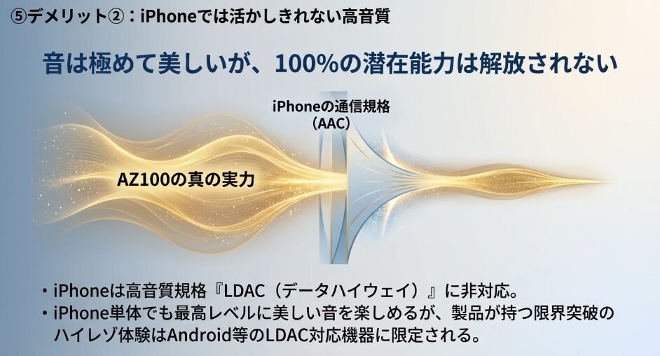 | 高音質規格 | LDAC / LC3 対応 | AAC / Apple Lossless |