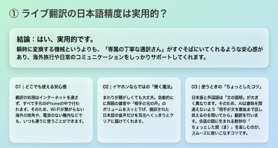 ライブ翻訳の日本語精度は実用的?